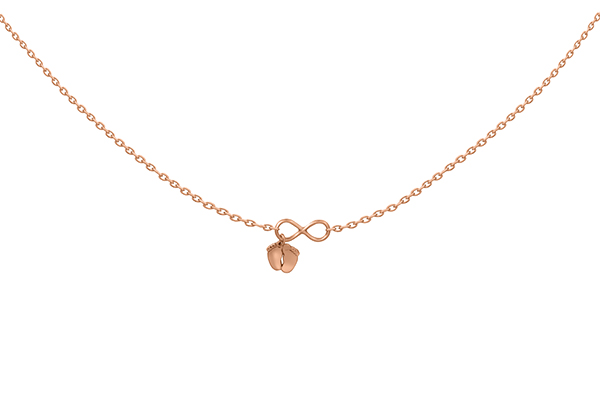 Die Infinity Babyfüßchen-Halskette ist ein klares und elegantes Schmuckstück. Es ist für Jungen wie für Mädchen gleichermaßen geeignet. Zum Geburtstag ein wunderbares Geschenk und selbstverständlich ebenfalls gravierbar.
