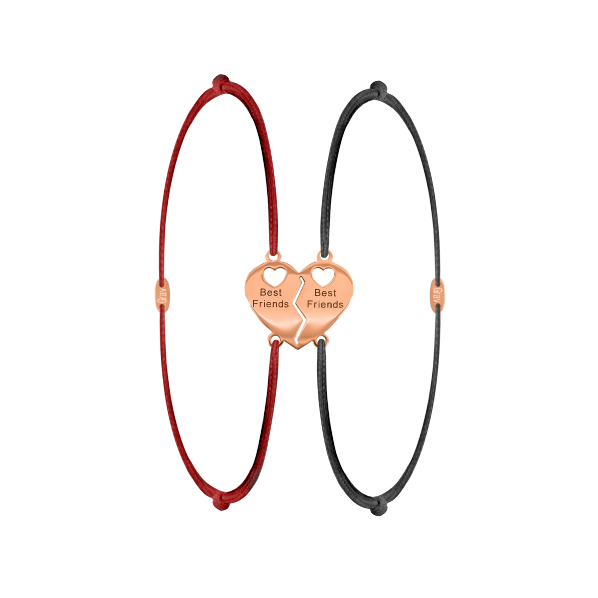 Überraschen Sie Ihre beste Freundin mit diesem besonderen Armband Set aus Rosegold, das ein teilbares Herz und die Gravur "Best Friends" als Zeichen ewiger Freundschaft präsentiert. Wählen Sie Ihre Wunschgröße und Lieblingsfarbe für das Band und teilen Sie uns diese im Bestellhinweis mit. Das perfekte Geschenk, um Ihre Verbundenheit stilvoll zu feiern und gemeinsam ein einzigartiges Schmuckstück zu tragen.