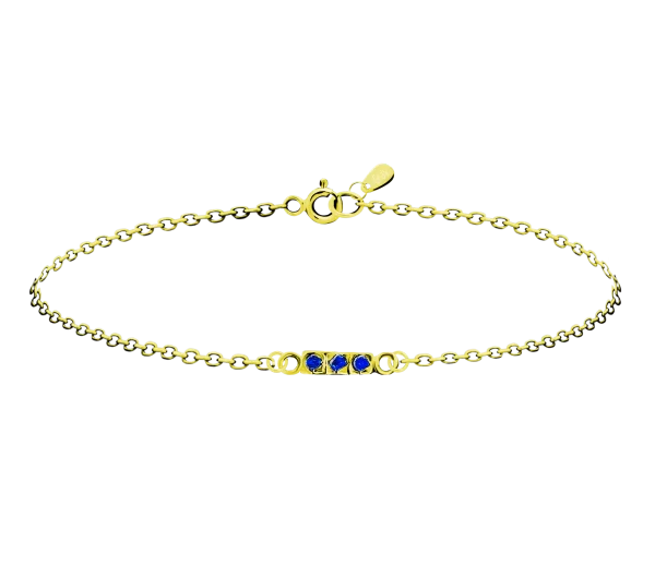Dieses Armband selbst ist zeitlose Eleganz, die drei blauen Zirkonia-Steine lassen jede Gelegenheit erstrahlen. Das feine, handgefertigte Armband aus Gelbgold ist ein elegantes Accessoire, da es jedes Set aufhellen wird. Wähle aus unseren Stein-Halsketten und kreiere deinen eigenen einzigartigen Stil. Die Größe der Steine beträgt 1 mm bis 2,5 mm.
