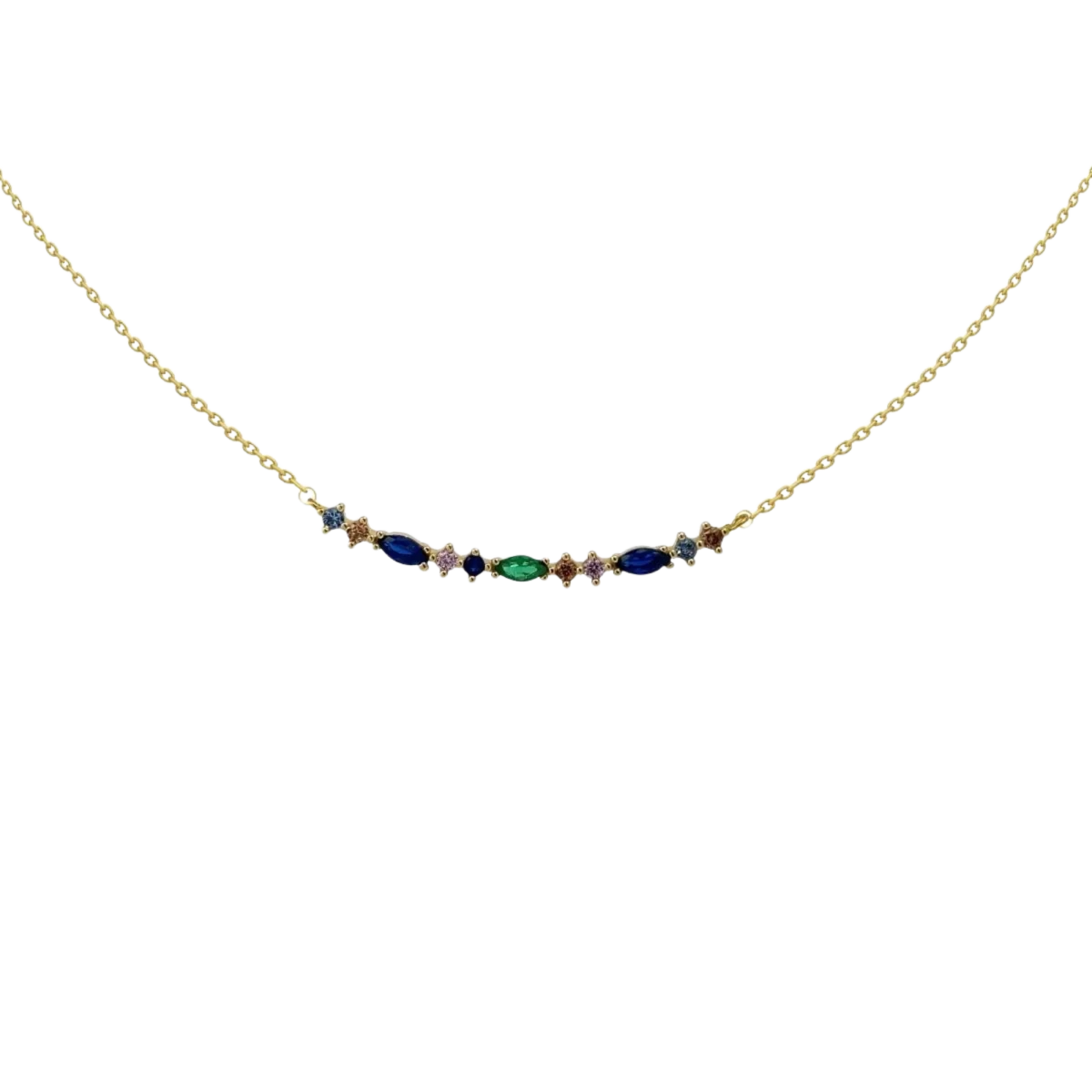 Buntes Zirkonia-Steine Gelbgold plattiert Silber 925 Halskette