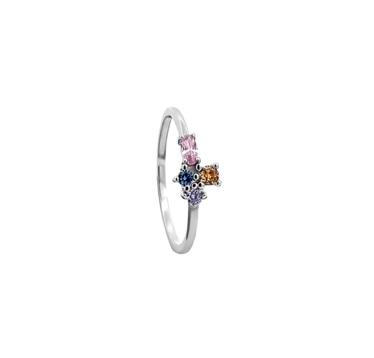 Bunte Zirkonia Steine Weißgold plattierter Silber 925 Ring