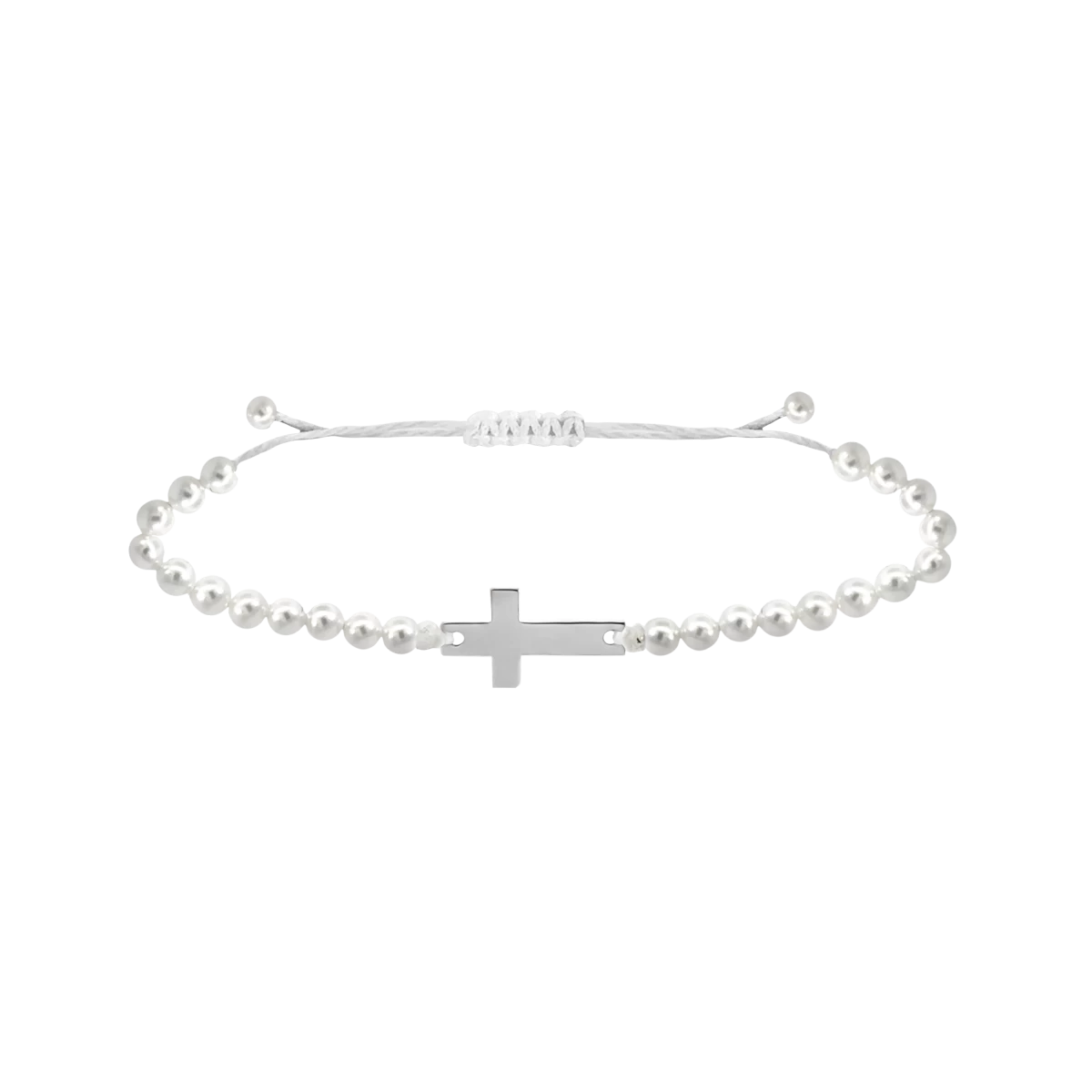 Zarte Kreuz Armband mit kleinen Perlen aus 925 Silber Schmucktrend für Damen