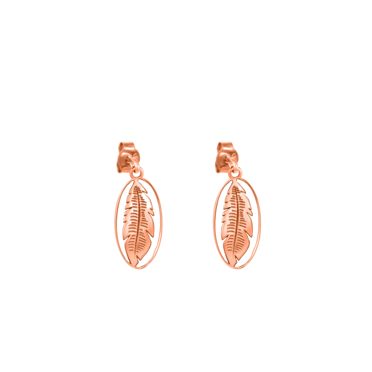 Feder in ovalem Rahmen Rosegold 585 Ohrringe