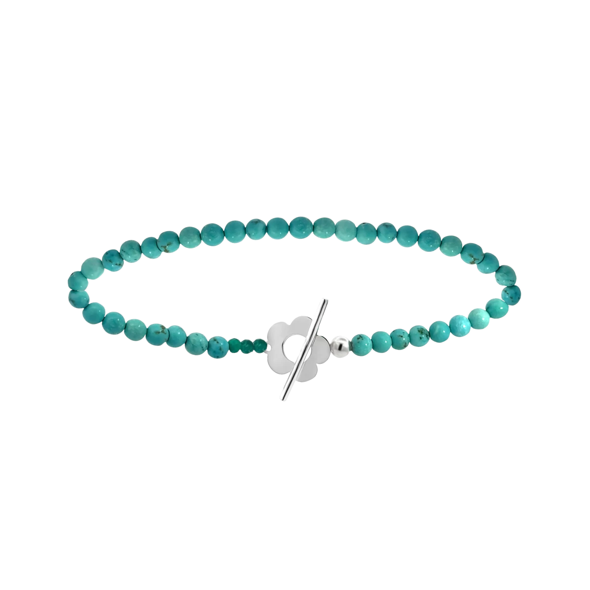 Entdecken Sie die zeitlose Schönheit dieses exklusiven Armbands, das mit einer kunstvollen, blütenförmigen Schließe und sorgfältig arrangierten Türkissteinen begeistert. Dieses Schmuckstück verleiht jedem Outfit einen Hauch von Raffinesse und natürlicher Eleganz und unterstreicht Ihren individuellen Stil auf stilvolle Weise. Ideal für alle, die das Besondere suchen und Wert auf hochwertige Verarbeitung legen.