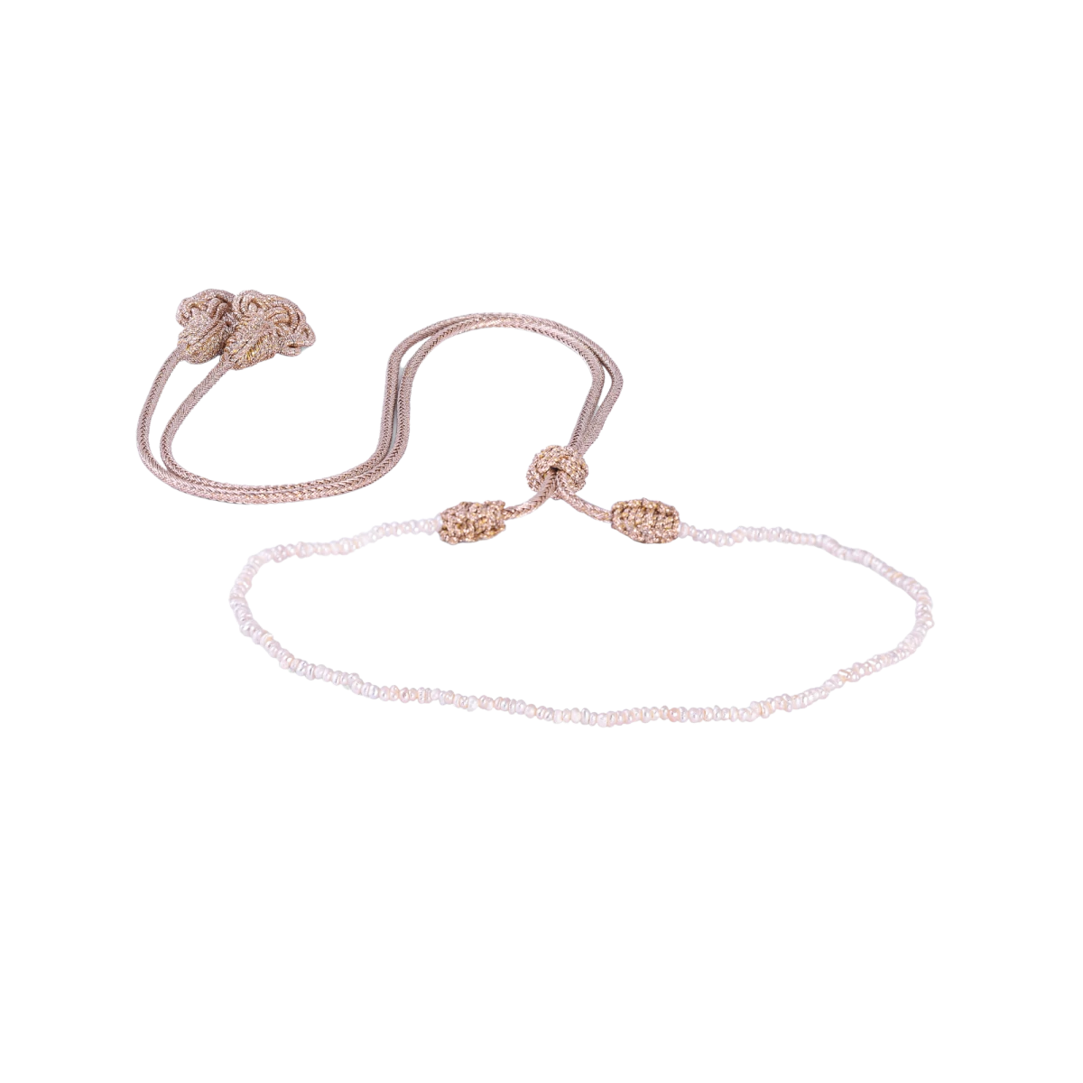 Arabische Goldfaden Halskette mit echten Süßwasserperlen Roségold Schmuck Highlight