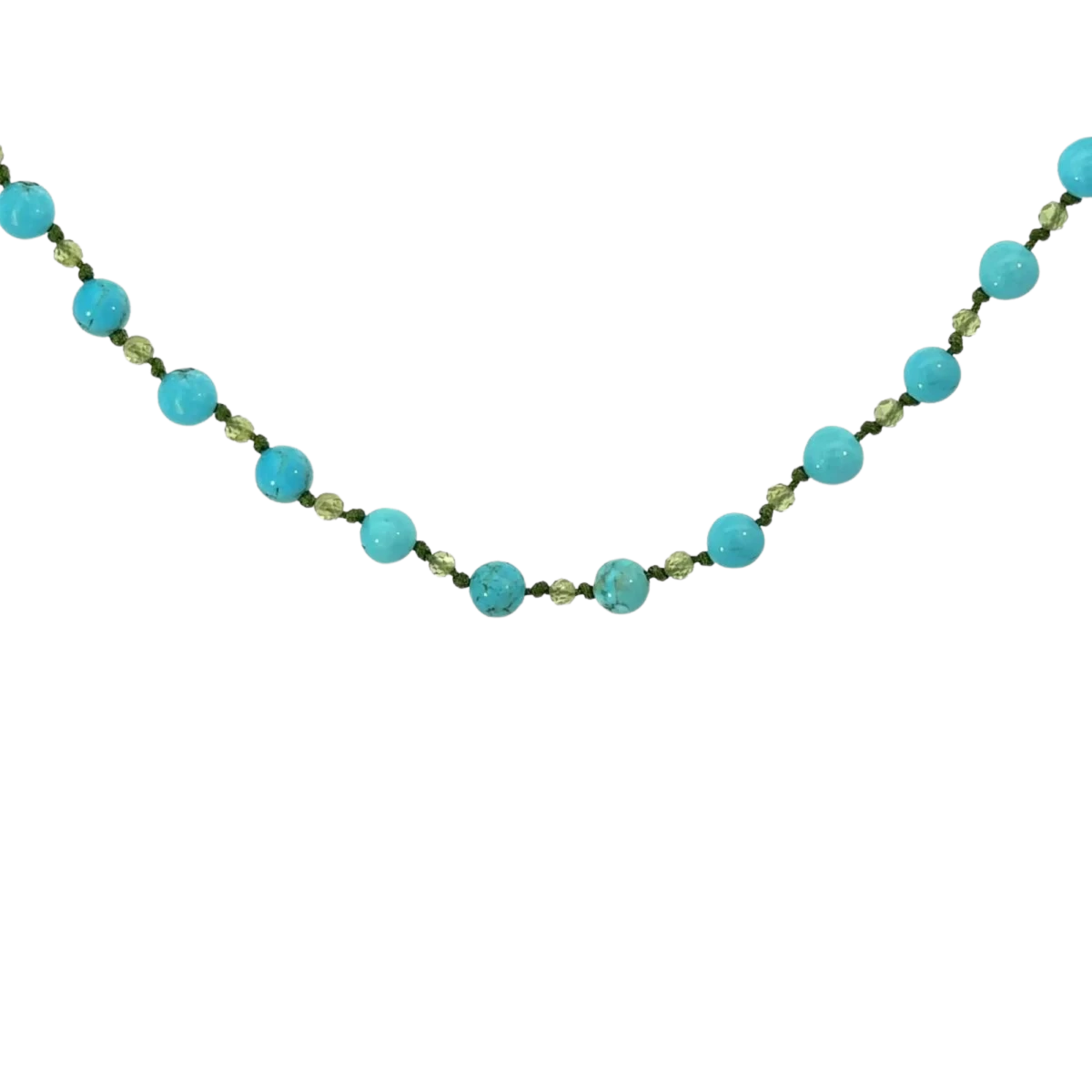 Versilberte 925er Kette mit Knoten und Türkis-Mineral
