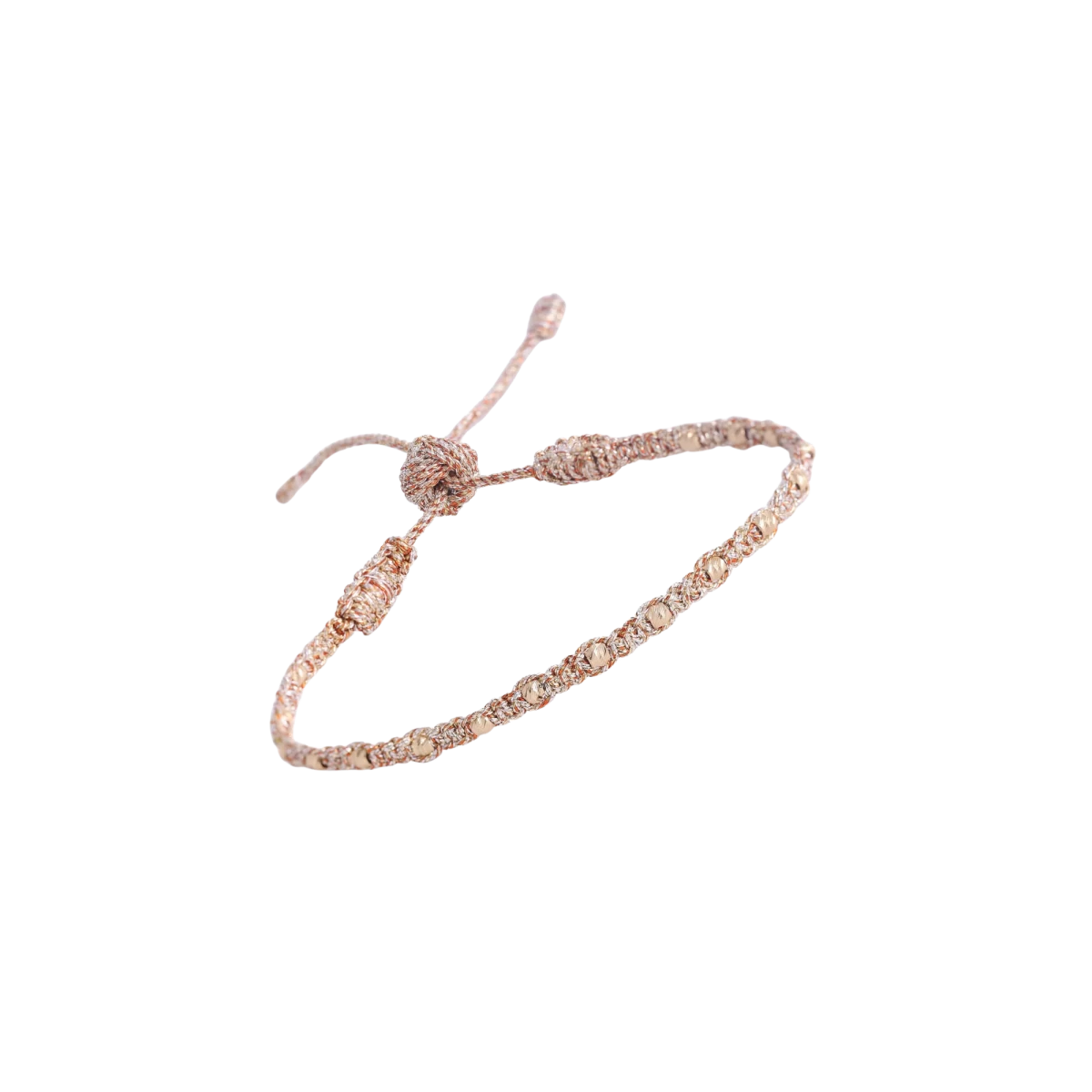 Discover the magic of the Maya Luna bracelet, where shimmering gold, elegant silver, and warm toffee threads are beautifully woven together in perfect harmony. The combination evokes a cozy, luxurious vibe, while the 18k gold-plated beads add a playful sparkle that lights up the wrist. The intricate details of the traditional weaving technique bring a touch of modern elegance and effortless charm. Wear the Maya Luna bracelet to add warmth, style, and a hint of luxury to your everyday look, or pair it with chic outfits to highlight the feminine, radiant spirit of any occasion.