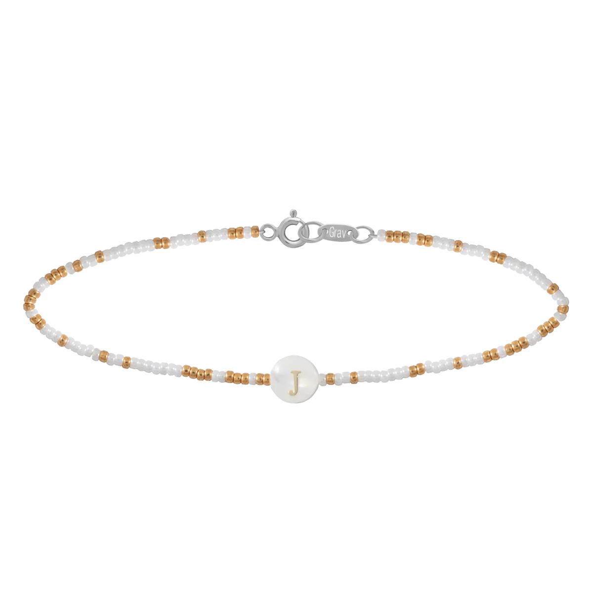 Goldweiße Saatperlen mit Buchstabenanhänger Silber 925 Armband