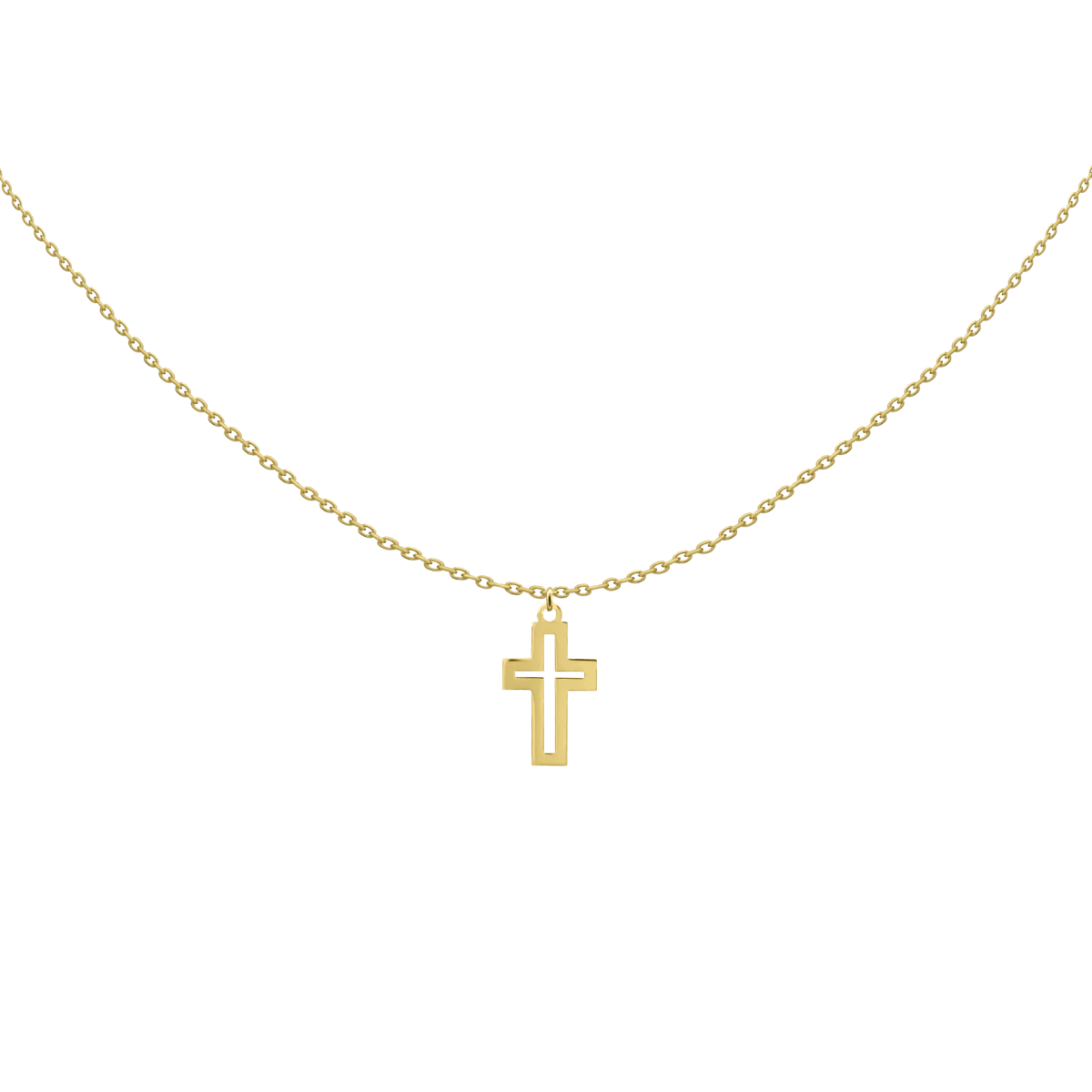 Gelbgoldkette 14K mit Hängendem Kreuz Kontur Moderner Look für Damen