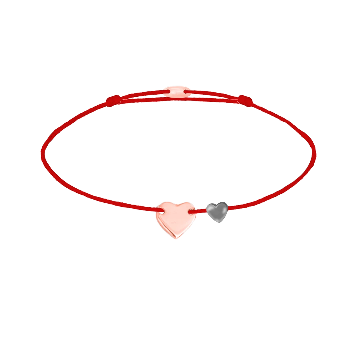 Für diejenigen, die Qualität und langlebigen Schmuck bevorzugen, ist dieses Armband aus farbenfrohem, reißfestem Faden, verziert mit einem Herzanhänger und einem kleineren Herz aus Rosegold, die perfekte Wahl, da es seinem Träger Eleganz und Einzigartigkeit verleiht.