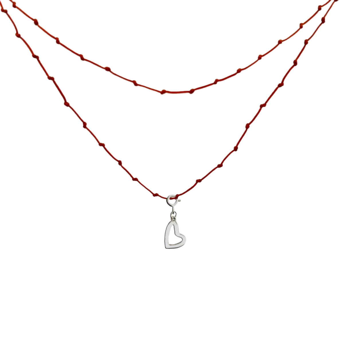 Langes, verknotetes Silber 925 Fadencollier mit buntem Herzanhänger
