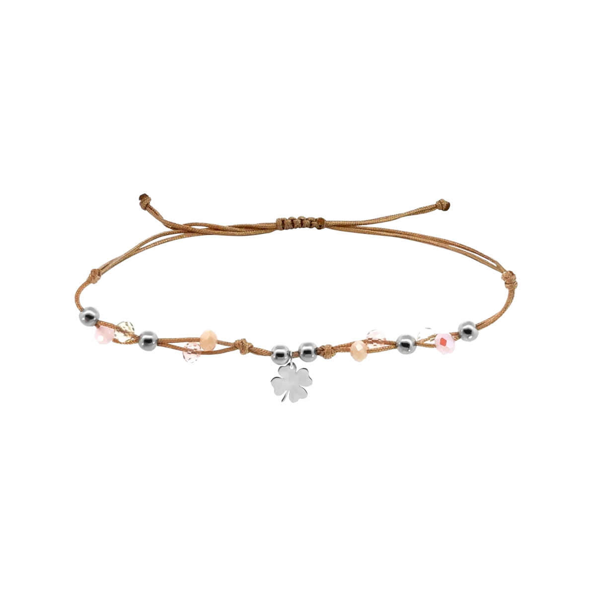 Erleben Sie die faszinierende Verbindung von Harmonie und Glück mit diesem Armband aus farbenfrohen Kristallen und einem stilvollen Kleeblatt-Anhänger, dem zeitlosen Symbol für Glück. Das fein gearbeitete Makramee-Verschluss ermöglicht eine individuelle Größenanpassung und sorgt für angenehmen Tragekomfort den ganzen Tag. Die energetischen Kristalle schenken positive Schwingungen und machen das Armband zu einem trendigen Accessoire, das sowohl zu Alltagsoutfits als auch zu besonderen Anlässen perfekt passt. Ideal für alle, die modische Akzente setzen und das Glück stets bei sich tragen möchten.