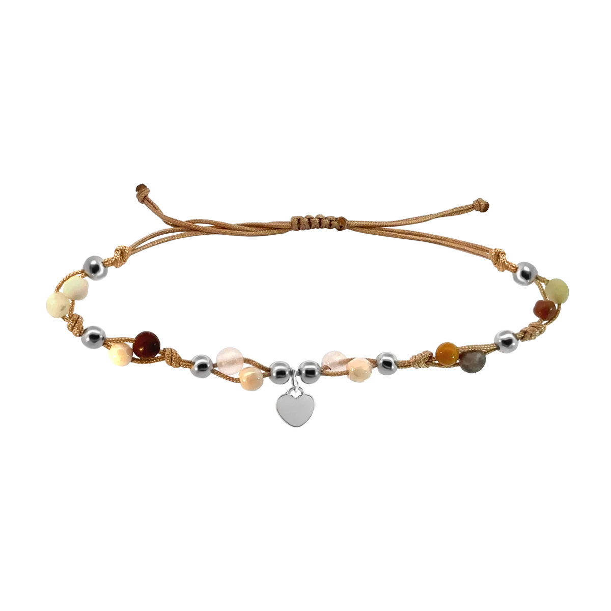 Bunte Makramee Fußkette mit Herzanhänger aus 925er Silber und Mineralperlen