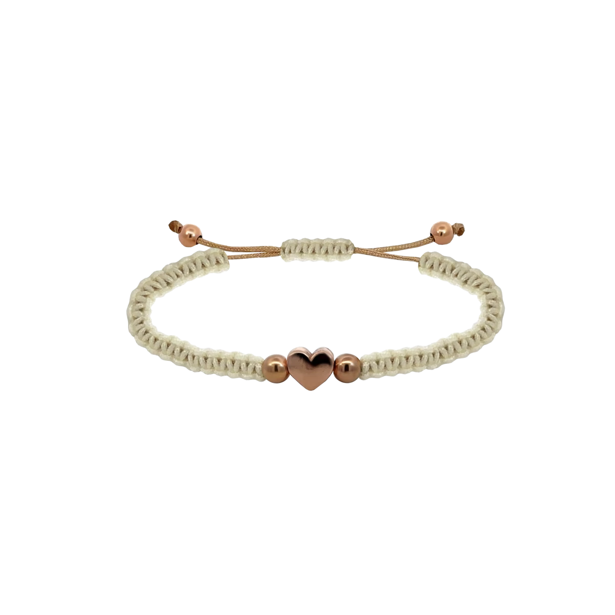 Herz Armband aus 925er Silber mit Roségold Veredelung und Makramee Design