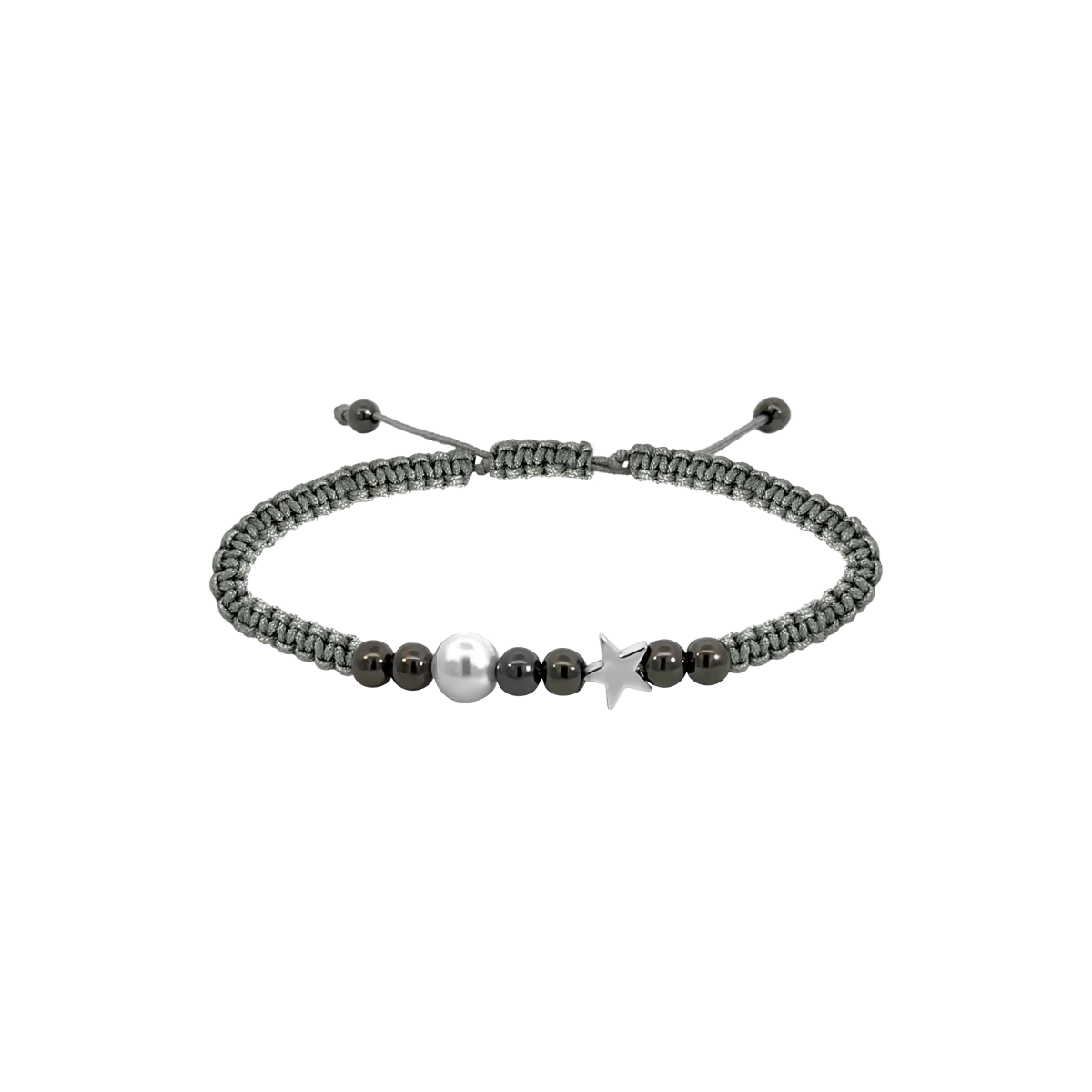 Makramee Armband mit Hämatit Stern und Onyx aus 925er Silber Schmucktrend
