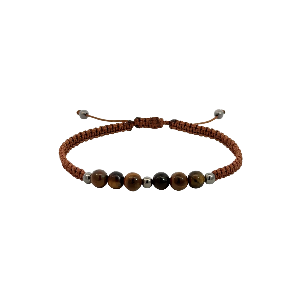 Makramee Armband mit Tigerauge Perlen und 925er Silber Mineral Schmuck für Damen