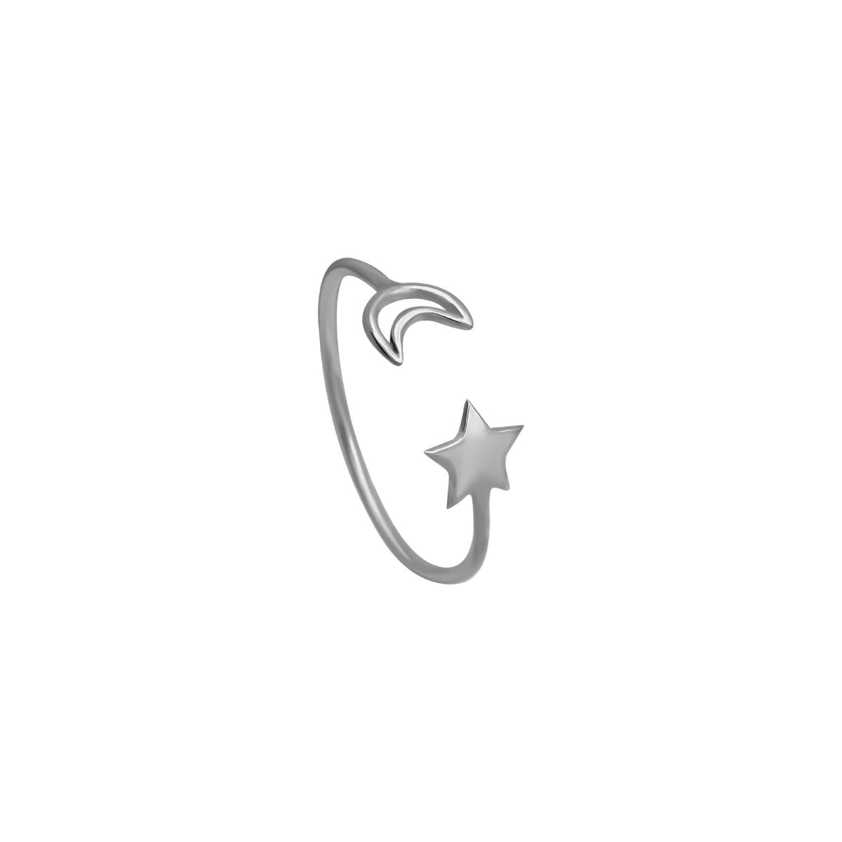 Erleben Sie den Zauber des Nachthimmels mit unserem faszinierenden offenen Ring. Mit einem Mondmotiv auf der einen und einem Stern auf der anderen Seite ist dieses Schmuckstück ein wahrhaft einzigartiges Kunstwerk. Perfekt für jeden Anlass und mit außergewöhnlicher Handwerkskunst gefertigt. Verleihen Sie Ihrem Stil das gewisse Etwas. Entdecken Sie mehr und sichern Sie sich Ihr persönliches Highlight noch heute!