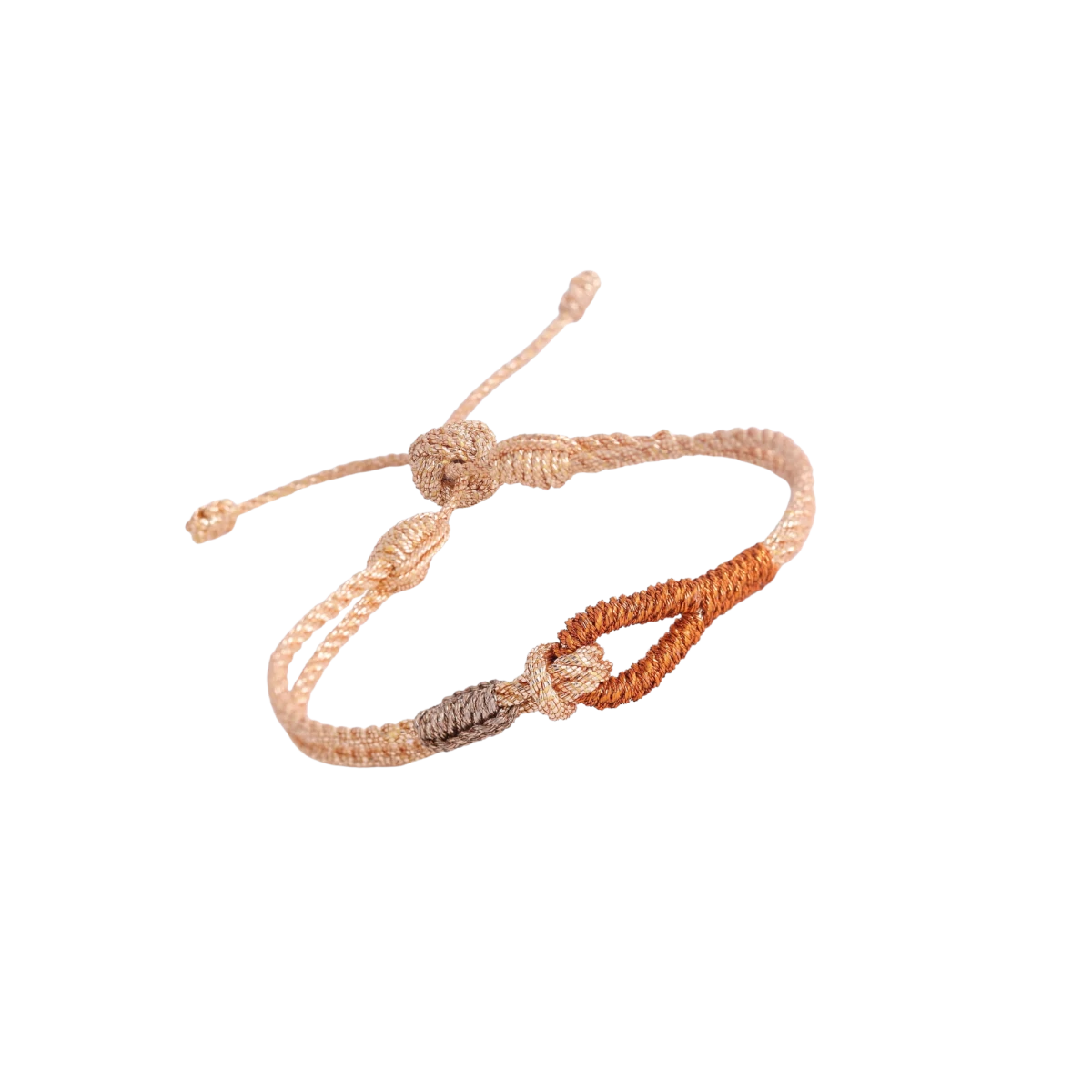 The Maya Hook bracelet combines modern minimalism with the refined traditions of artisanal jewelry-making! Its distinctive hook knot adds character and uniqueness to the design. The gentle peach shade and the warm walnut tone create a natural and elegant contrast, bringing a refined yet fresh touch to any outfit. This stylish accessory makes a statement on its own but becomes even more distinctive and unique when paired with other bracelets. The handcrafted Maya Hook bracelet is a perfect choice for both everyday wear and special occasions – a modern, versatile piece that adds natural elegance and sophistication to every look.