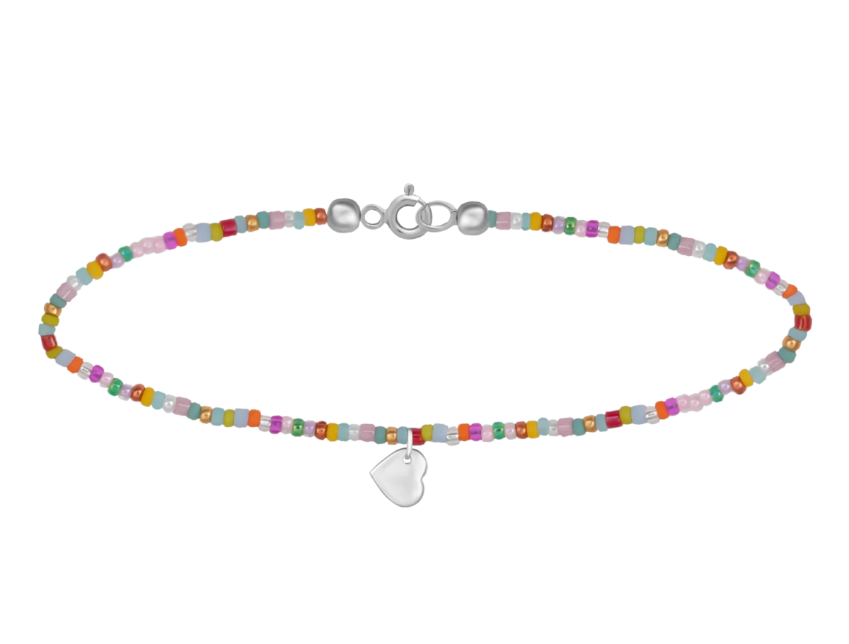 Perle mit farbigem Herzanhänger Silberarmband