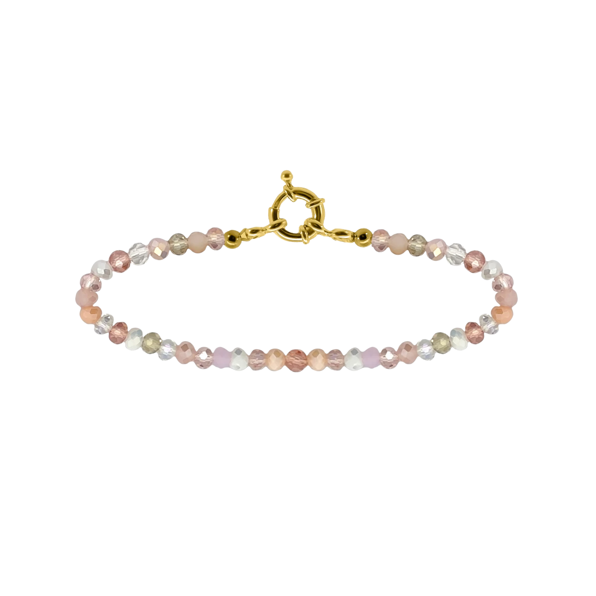 Dieses exklusive Armband begeistert mit einem faszinierenden Mix aus rosafarbenen und weißen Kristallen, die bei jedem Lichtspiel glänzen. Der hochwertige Verschluss aus 18 Karat vergoldetem 925er Sterlingsilber verleiht dem Schmuckstück einen Hauch von Luxus und Eleganz. Perfekt für besondere Anlässe und stilbewusste Trägerinnen, die Wert auf Individualität und edles Design legen.