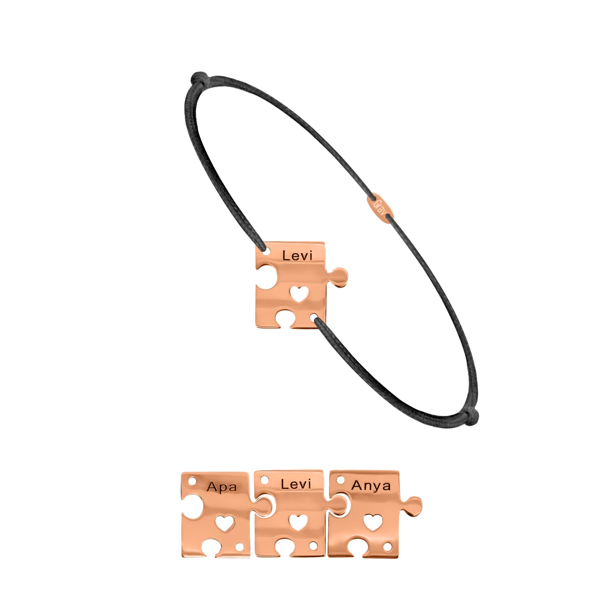 Puzzle Familie 3 Armband aus 14K Roségold mit Zugband für Verbundenheit