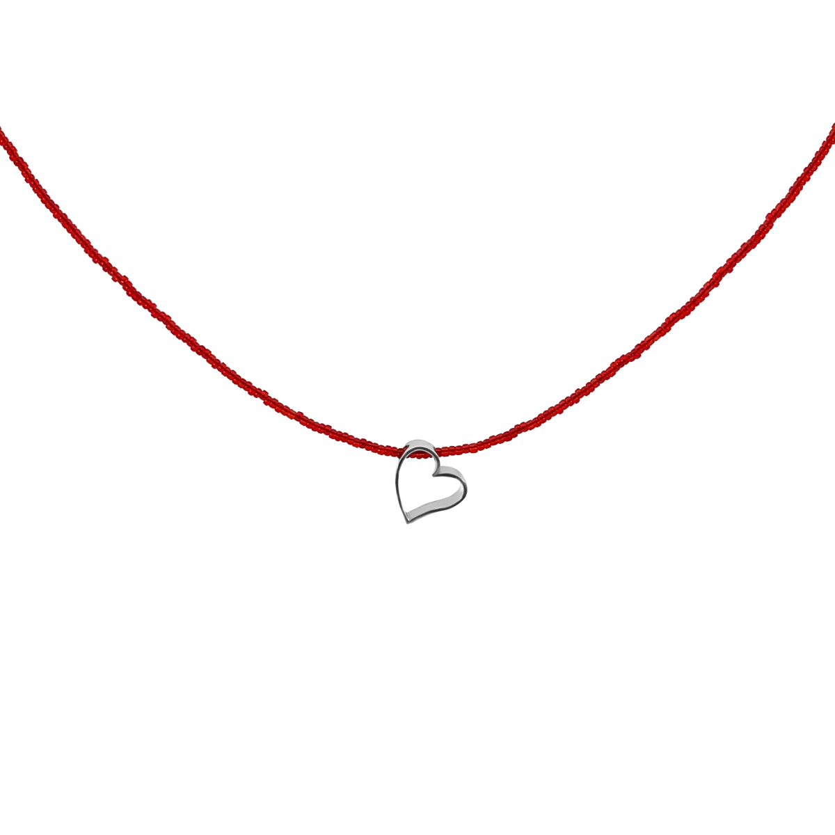 Red Seed Beads With Amorphous Heart Pendant Silver 925 Necklace