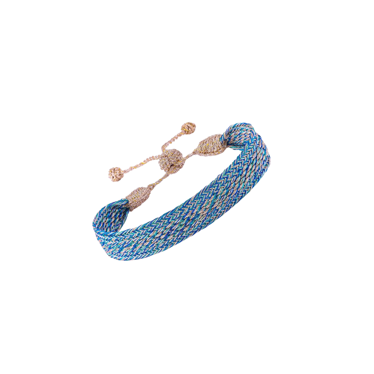 Handmade bracelet, with a production time of more than 3 hours. The dominant color is Majorelle Blue, with its intense shades of blue and violet creating a unique and captivating effect. The material is called Sfifa in Arabic, made from the weaving of traditional golden threads. With its enchanting range of colors, this piece will brighten up your look. The fabric is water-resistant; however, for longer durability, please avoid wearing it while showering, doing household chores, or exercising. Thanks to the sliding knots, the bracelet size is adjustable between 14 and 23 cm.