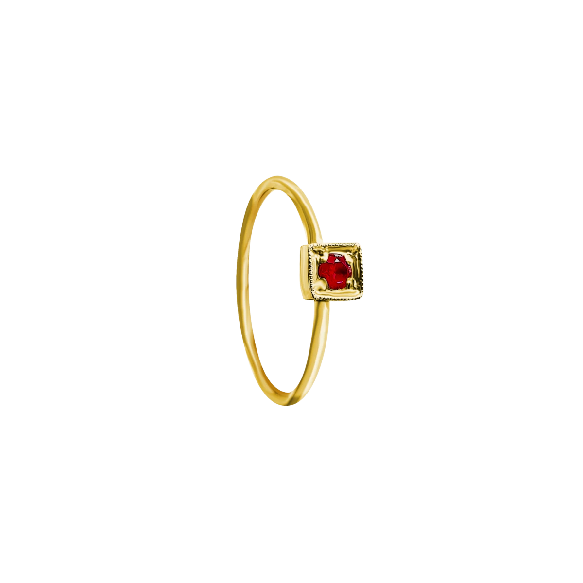 Wirklich einzigartiger Schmuck für Individuen. Unser Ring, verziert mit einem roten Zirkonstein, ist eines der brillanten Stücke der Chloee-Kollektion aus Gelbgold. Wenn du ein Fan von stilvollen Looks und besonderem Schmuck bist, dann ist dieser Ring die beste Wahl für dich!