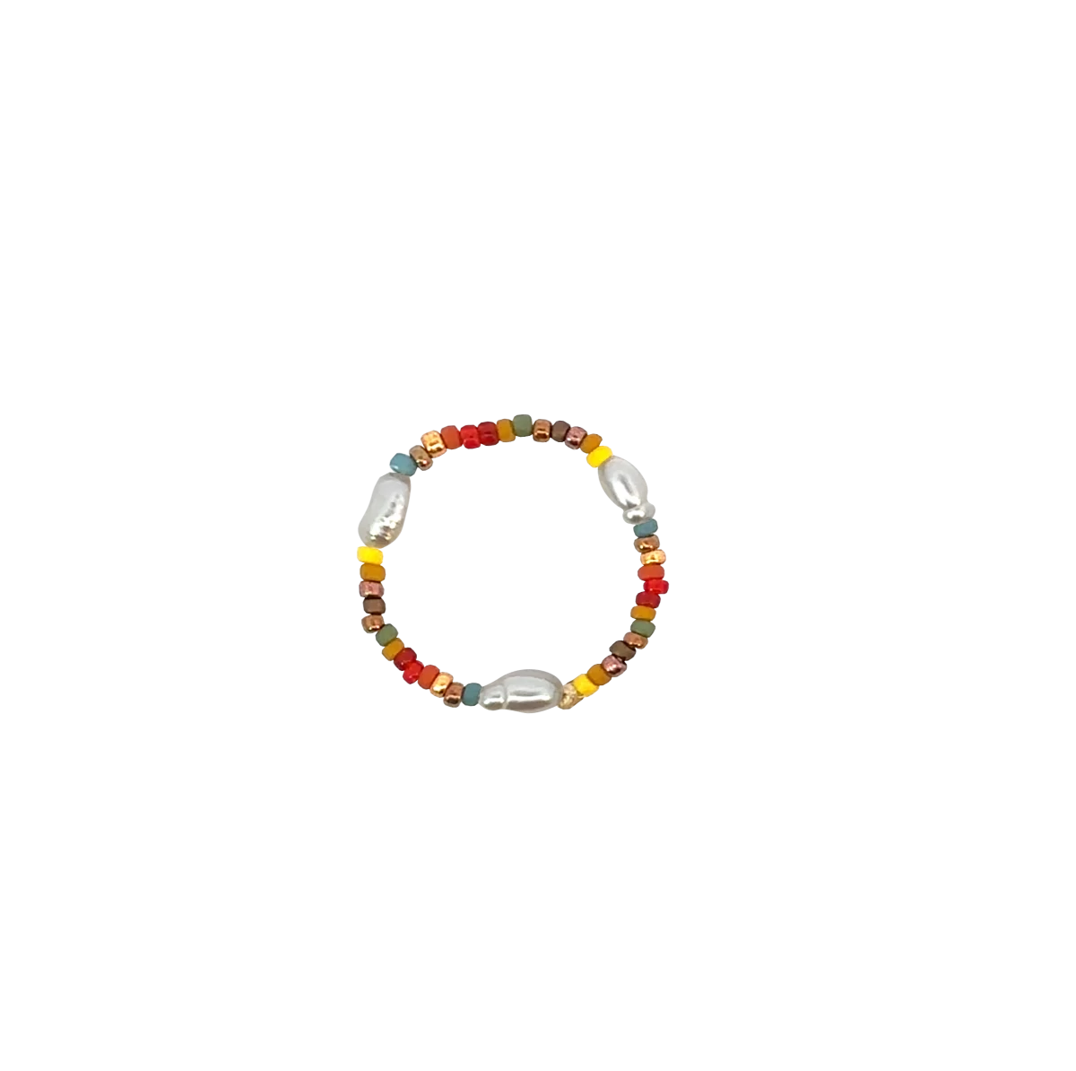 Discover the magic of autumn with this youthful and vibrant ring! The hand-strung design beads in lively shades of golden brown, yellow, and reddish tones evoke the warm hues of nature, while the delicate, rice-shaped white freshwater pearls add a refined contrast, capturing the beauty of falling leaves and sunlit landscapes. This elegant and naturally beautiful ring is perfect for everyday wear as well as special occasions. The unique colors and playful arrangement of the beads make it stand out, making it an ideal gift for loved ones or a small yet stylish addition to your own jewelry collection.