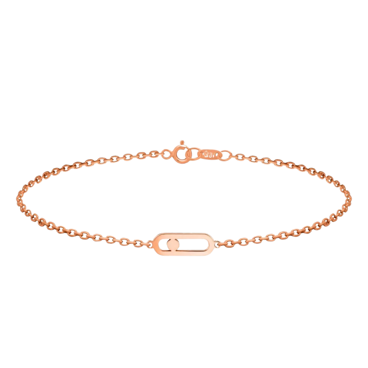 Entdecken Sie das exklusive ZILIA Armband aus hochwertigem Rosegold mit einem stilvollen Anhänger in Form einer Sicherheitsnadel. Das elegante Design wird durch einen runden Anhänger ergänzt, der individuell mit einem Zeichen Ihrer Wahl graviert werden kann – ideal für Initialen oder ein persönliches Symbol. Dieses personalisierbare Rosegoldarmband ist ein einzigartiges Schmuckstück und eine besondere Geschenkidee für Frauen, die Wert auf Individualität und zeitlose Eleganz legen. Der Anhänger misst 15 mal 7 Millimeter und macht dieses Armband zu einem modernen und zugleich klassischen Accessoire für jeden Anlass.