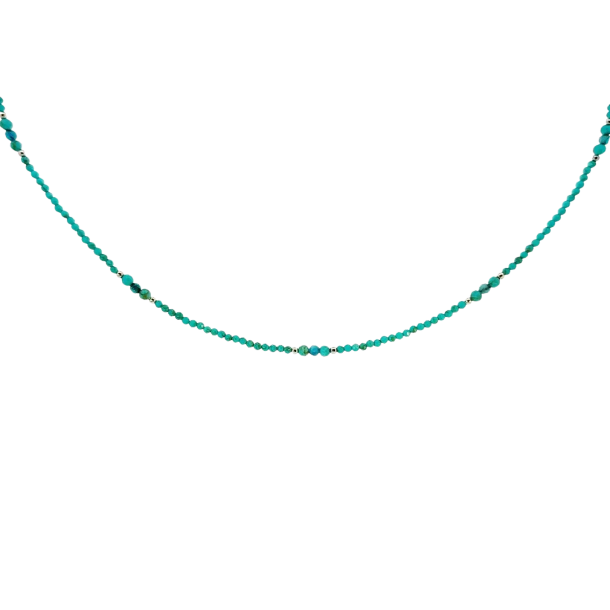 Die ZILIA Türkis Mineral Halskette aus hochwertigem 925er Silber vereint edles Design mit zeitloser Eleganz. Die Kombination aus strahlendem Türkis und feinen Silberperlen macht dieses Schmuckstück zu einem stilvollen Begleiter für jeden Anlass. Die sorgfältige Verarbeitung und die harmonische Farbgebung unterstreichen Ihre Individualität und setzen ein modisches Statement. Diese Silberkette ist vielseitig kombinierbar und verleiht jedem Outfit einen Hauch von Luxus und Exklusivität.