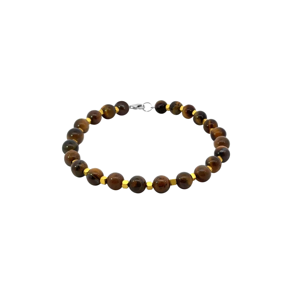 Unleash your inner strength with this men’s bracelet, featuring bold tiger’s eye gemstones and striking gold-tone hematite accents. This bracelet embodies the power and elegance of the tiger, making it a perfect choice for everyday wear or special occasions. Tiger’s eye has long been known as a stone of protection and personal power, supporting focus, boosting confidence and self-assurance, while helping to maintain emotional balance. The gold-tone hematite adds elegance and symbolizes wealth, success, and inner strength. This bracelet is not just a stylish accessory — it is also a symbol of courage, perseverance, and masculine elegance.