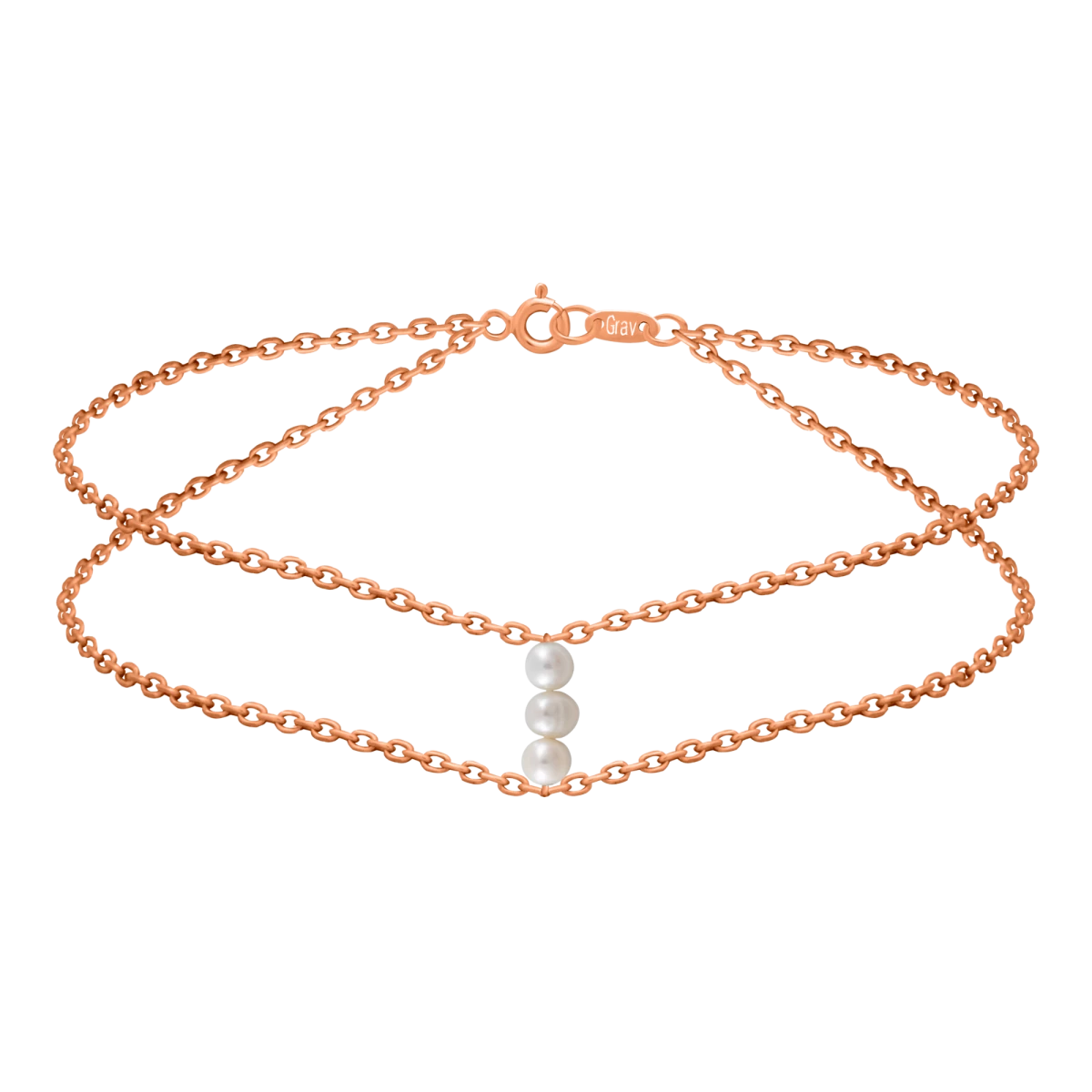 Das ZILIA Armband aus hochwertigem Rosegold vereint zeitlose Eleganz mit moderner Raffinesse. Drei edle weiße Süßwasserperlen sind kunstvoll zwischen zwei filigranen Rosegoldketten eingefasst und verleihen diesem Damenarmband eine besondere Ausstrahlung. Das luxuriöse Perlenarmband ist ein stilvolles Schmuckstück, das sowohl im Alltag als auch zu festlichen Anlässen für einen femininen und anspruchsvollen Look sorgt.