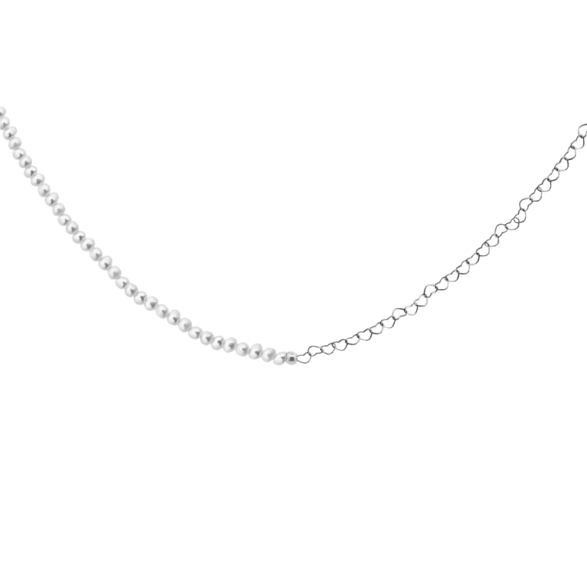 Wunderschön gearbeitete, elegante Halskette aus herzförmigen Silberkettengliedern und Süßwasserweißperlen, nach den neuesten Trends gestaltet. Die Größe der herzförmigen Kettenglieder beträgt 4 x 3,5 mm. Finde das passende Armband in unserer Auswahl.