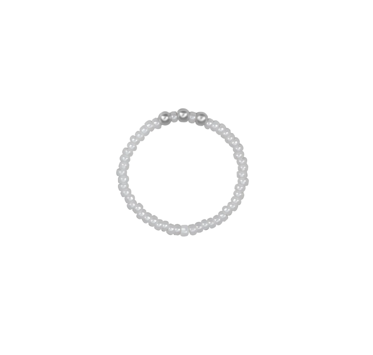 Ring aus kleinen weißen Perlen und Silberkugeln 925 für einen perfekt einfachen, doch ausreichend harmonischen Look. Trage ihn im Set mit den anderen Stücken der Little White Pearl Kollektion!
