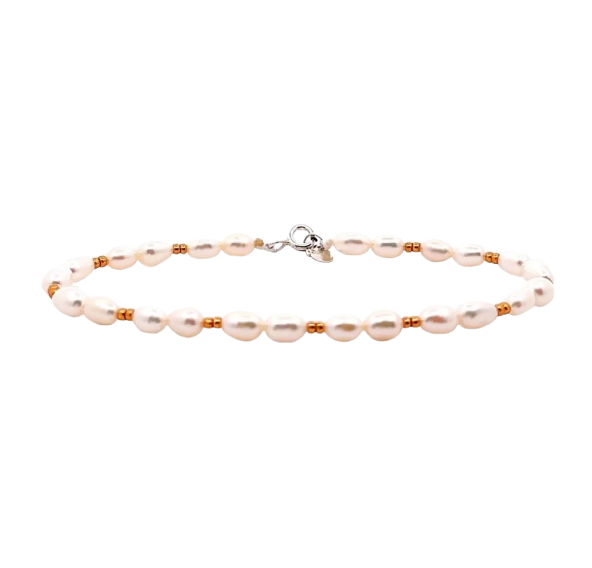 Weiße Süßwasserperlen- und Gelbgold-Seed-Perlen Silber 925 Armband