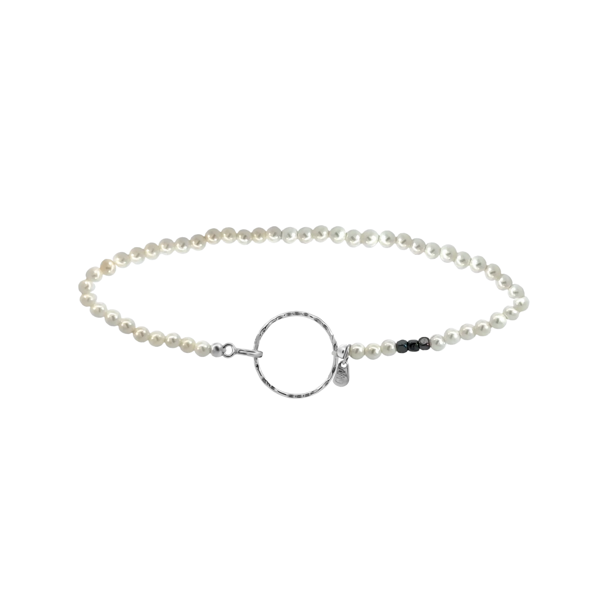 Weißes Perlen handgefertigtes Kreis Silber 925 Armband
