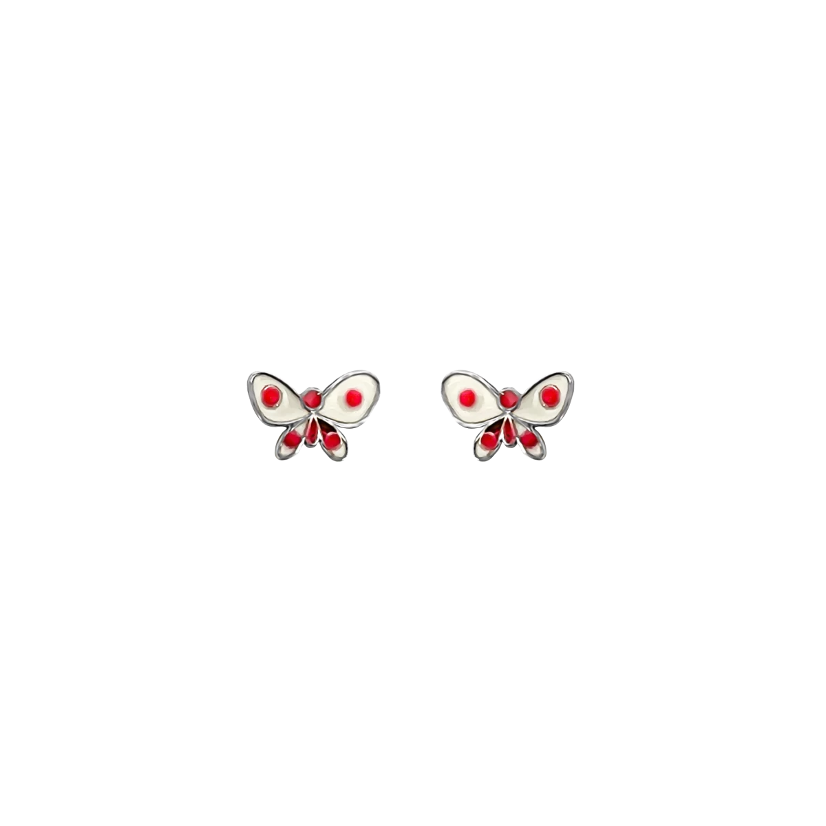 Diese lustigen Kinderohrringe mit dem weiß beflügelten Schmetterlingsdesign mit rosa Punkten vereinen Sicherheit und Fröhlichkeit, sodass auch die Kleinsten die Welt des einzigartigen Schmucks genießen können.